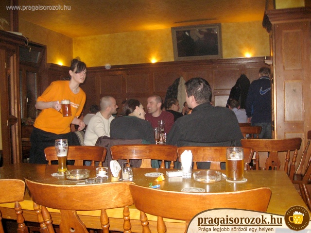 A kocsma tömve volt helyiekkel, akik – mivel napközben búcsú volt a kerületben - már igen nagy vigasságban múlatták az időt. A derék libeňi polgárok nekünk is helyet szorítottak az egyik asztalnál, mi pedig a fali táblára írt sorrend szerint kóstoltuk végig Richterék söreit a Pivovar U Bulovkyban. A könnyű, tizenkettes ležákkal kezdtünk, majd a sorban a düsszeldorfi tizenhármas következett. Áldottuk a szerencsénket, ugyanis éppen csapon volt a sörház prágai búzasöre, végül a kompozíciót az ír típusú, tizennégy fokos Richter Extra Stout Black-kel zártuk le. Elsőosztályú söröcske valamennyi!