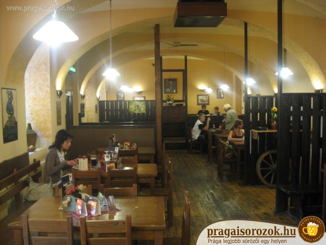 Érdemes beiktatni ezt a kis kitérőt, mert jó áron - huszonhét koronáért - mérik a tankból csapolt, tíz fokos Staroprament. Itt, a belváros közepén a kispénzű turisták számára ez nem elhanyagolható szempont. Csapon van továbbá az eggyel erősebb, tizenegyes Staró. Aztán az enyhén citrusos, korianderes felhangokkal bíró szűretlen, valamint a sötét változat is - néhány koronával drágábban.
