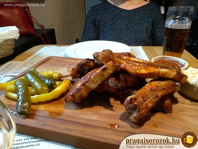Pečená žebra: csontos sült sertésoldalas. Ez is roppant látványos. Fél kilótól indul egy normál adag felfelé. Pazar lakoma. Mézes-chilis, vagy más mártogatóssal, újabban bbq szószal. Fenséges. Időnként csípős, kosszarvú paprika vagy egyéb savanyúság is kerül mellé. Ha kellően kikentük magunkat vele és alkar középig zsírosak vagyunk, akkor volt igazán finom.